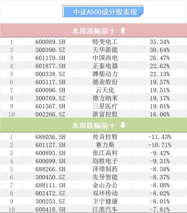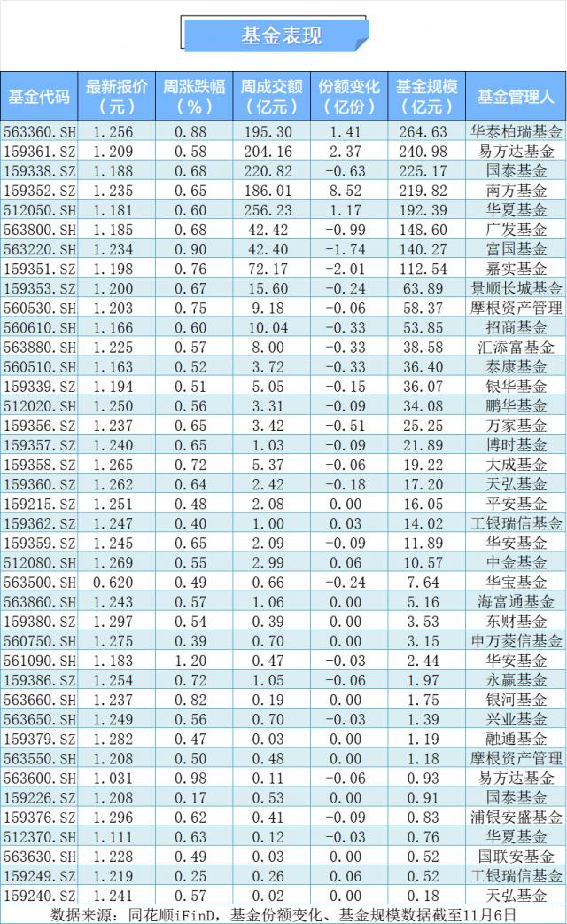 本周中证 A500 指数上涨 0.69%,截至 11 月 7 日收盘,报 5622.12 点。本周日均平均成交额为 7158.45 亿元,单日成交额环比下降 19.77%。
